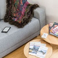 •Living room with TV, radio, dining table and a comfy sofa