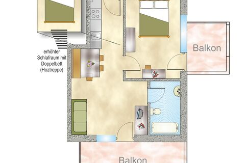 40m² room for 2 to 4 persons