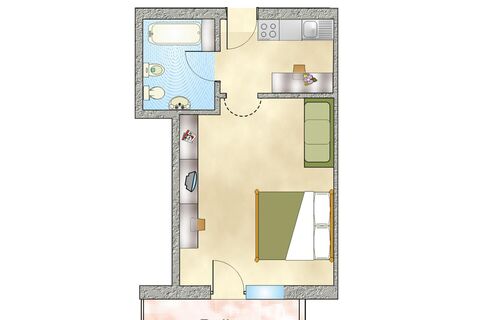 40m² room for 2 to 3 persons