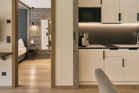 Nothing must be done - with the easy-going light-heartedness, just like in a holiday flat. Suites and flats with their own kitchen, dining and living area, with private loggia or landscaped terrace. Don't feel like cooking yourself? Fits! We will be happy to welcome you at our restaurant.