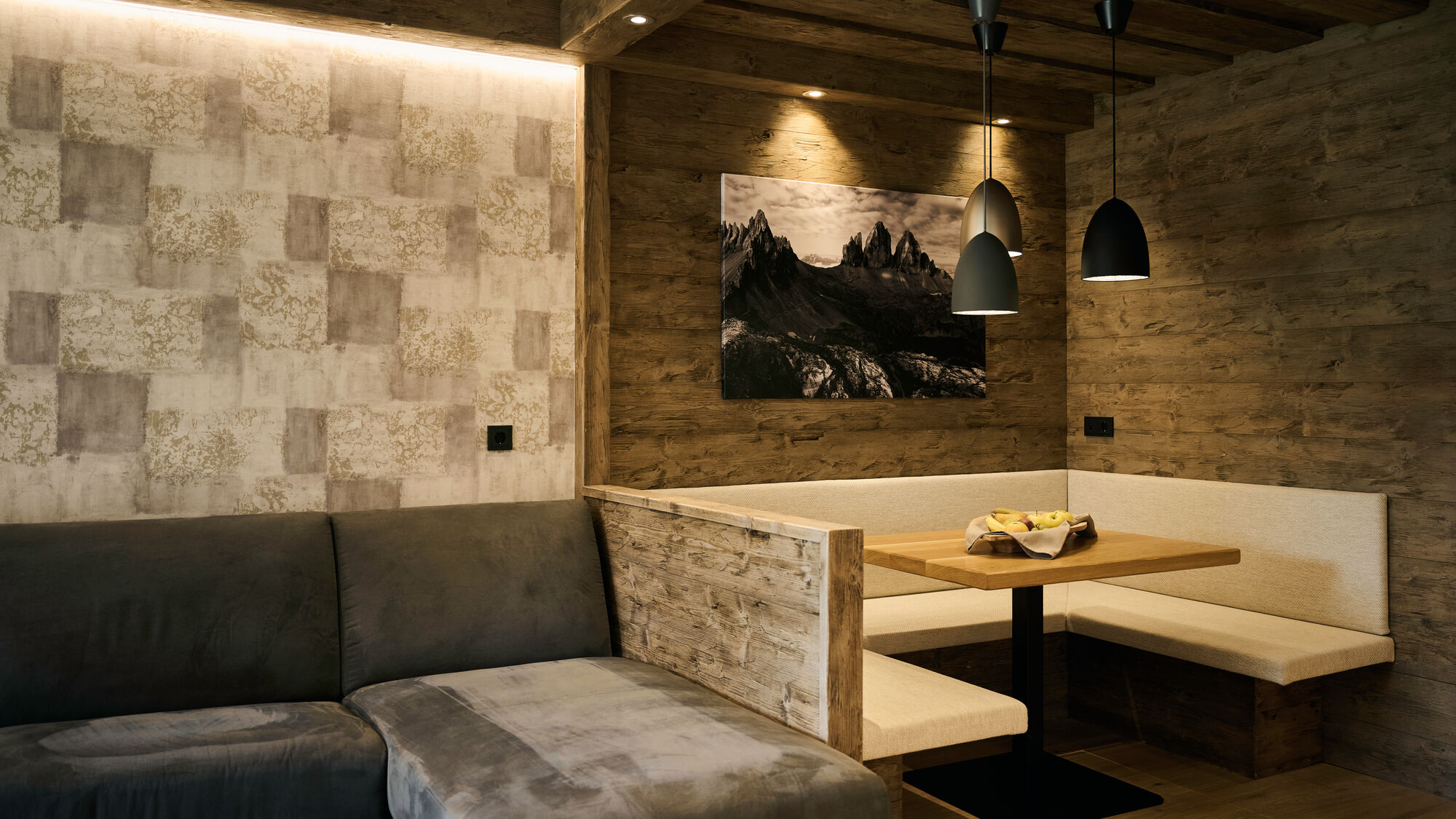 Everything is possible - with all the comforts of a hotel, from wellness with a 25-metre pool, 5 saunas and various relaxation rooms, with a yoga room and gym and with an outdoor programme, on foot or by bike in summer. The world-famous Dolomite peaks are within sight and easily accessible on foot or by public transport.