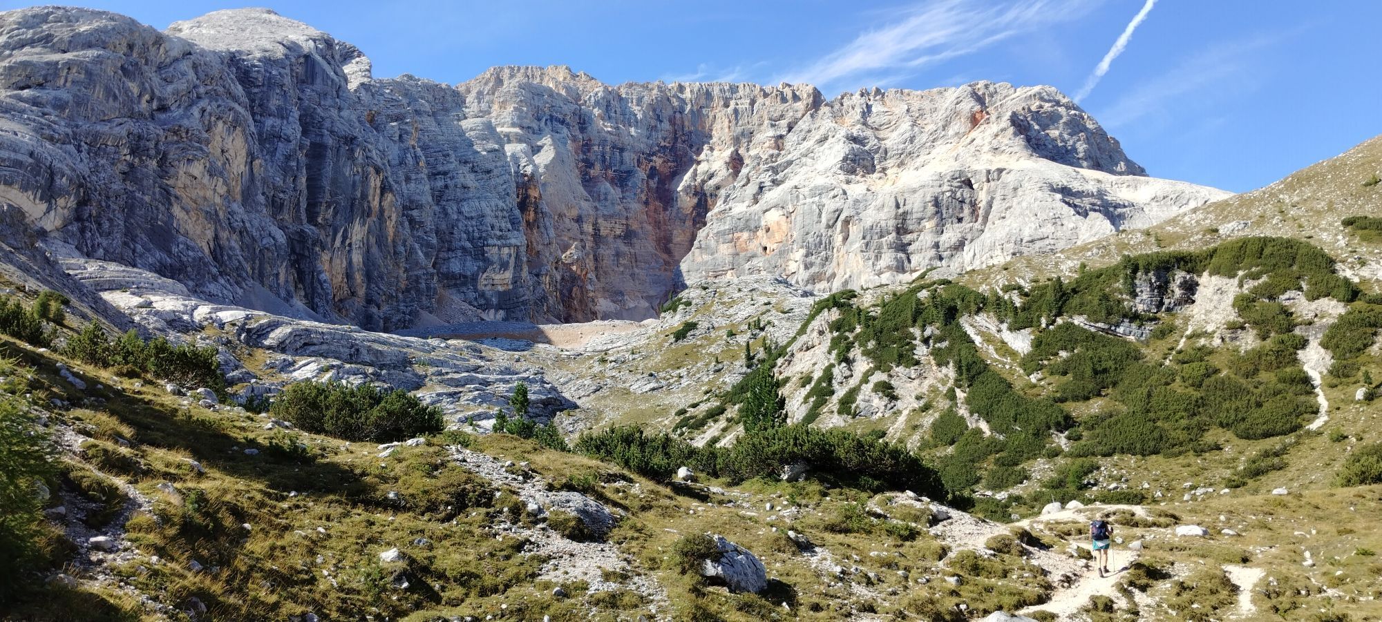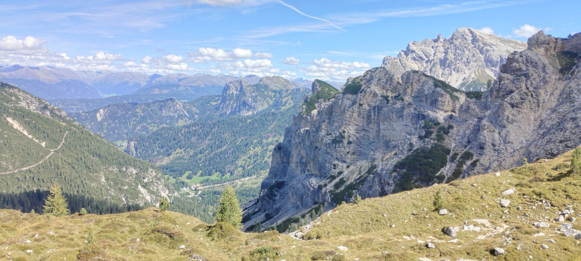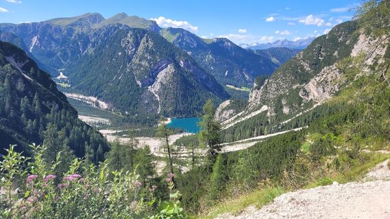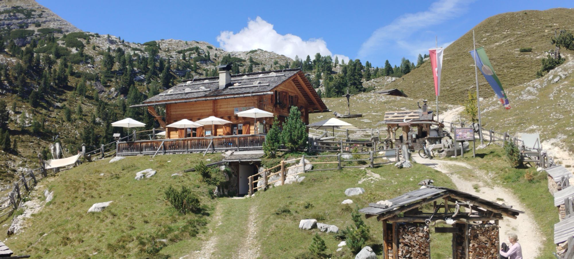 Über eine weite Hochebene Richtung Pragser Wildsee, Abstieg und Rast in Emmas Bistro.