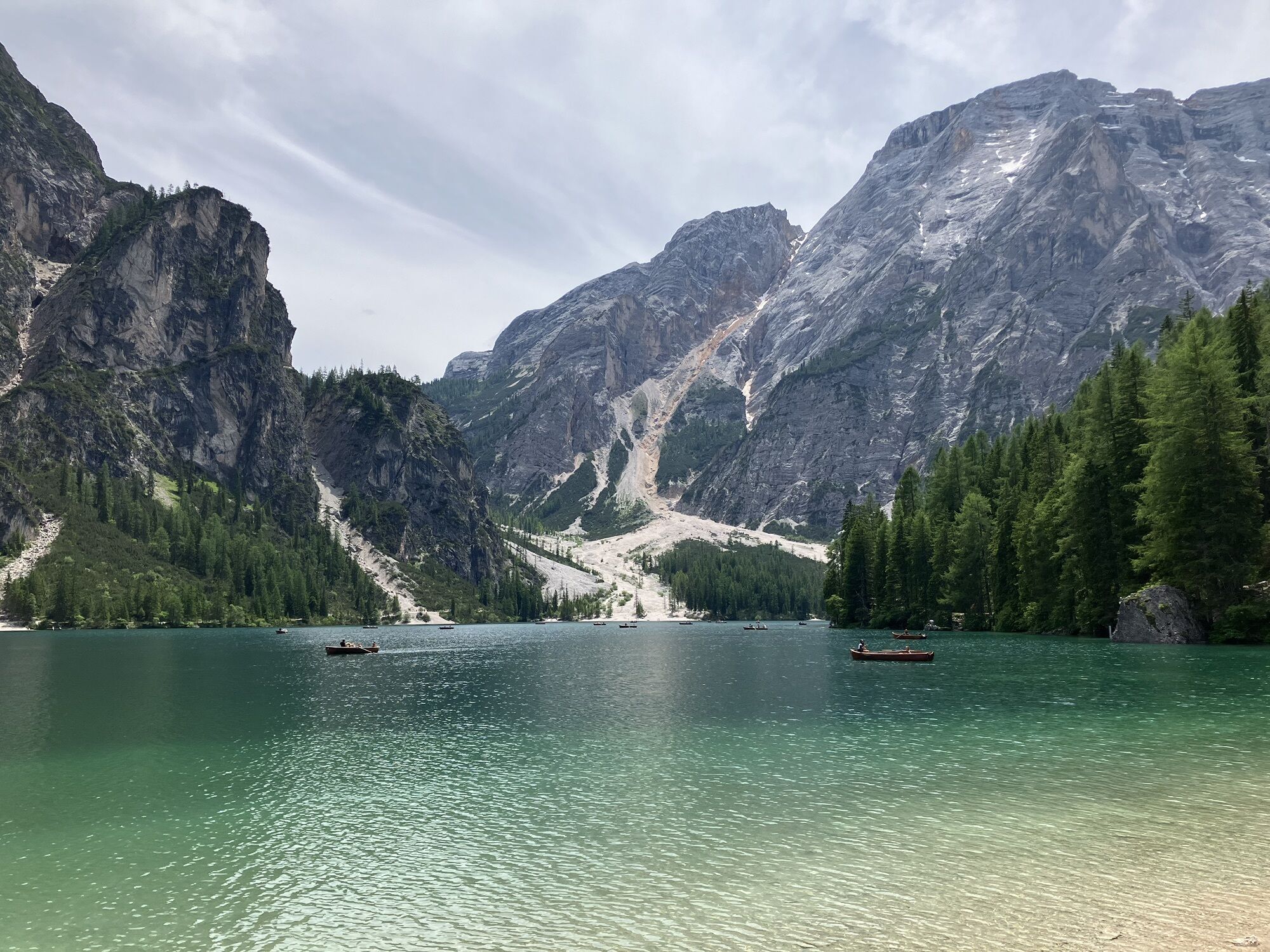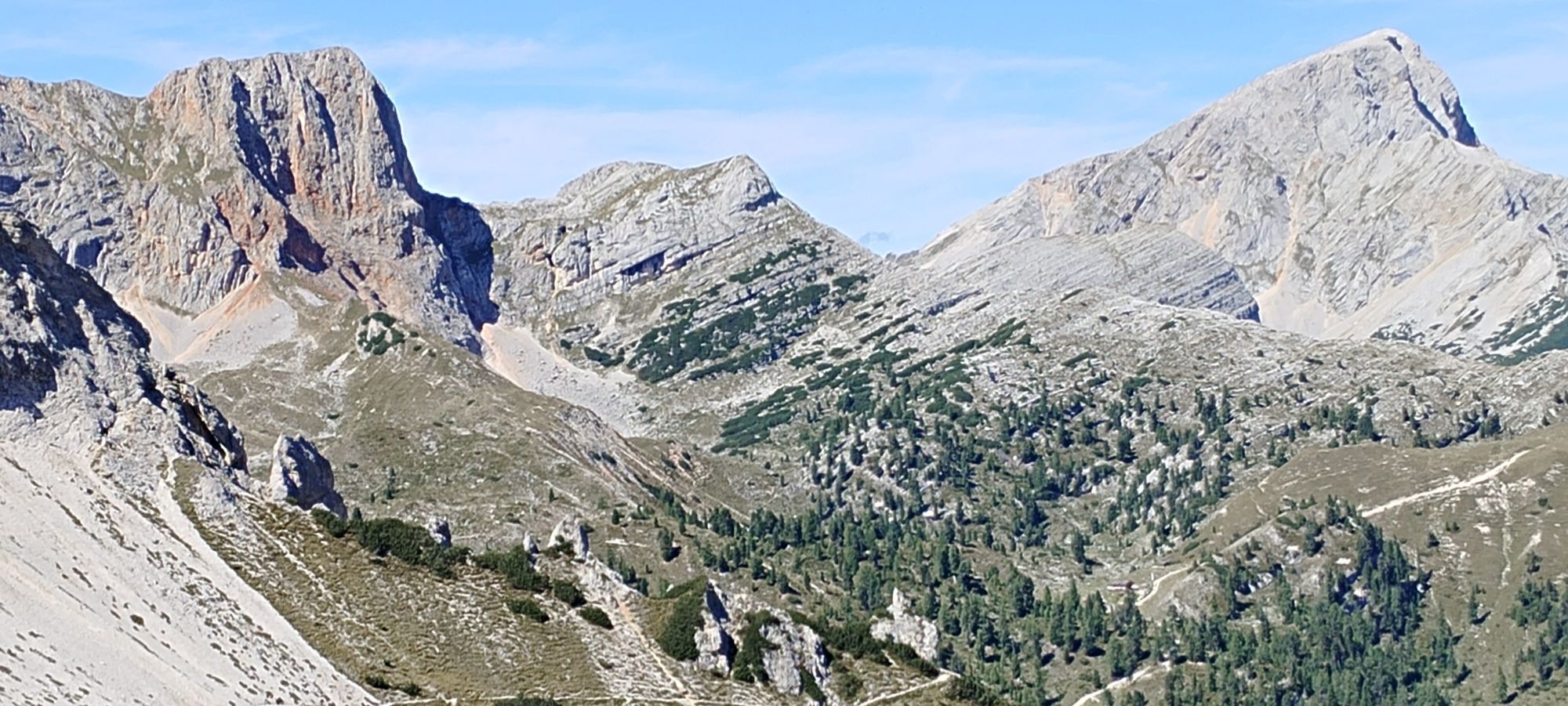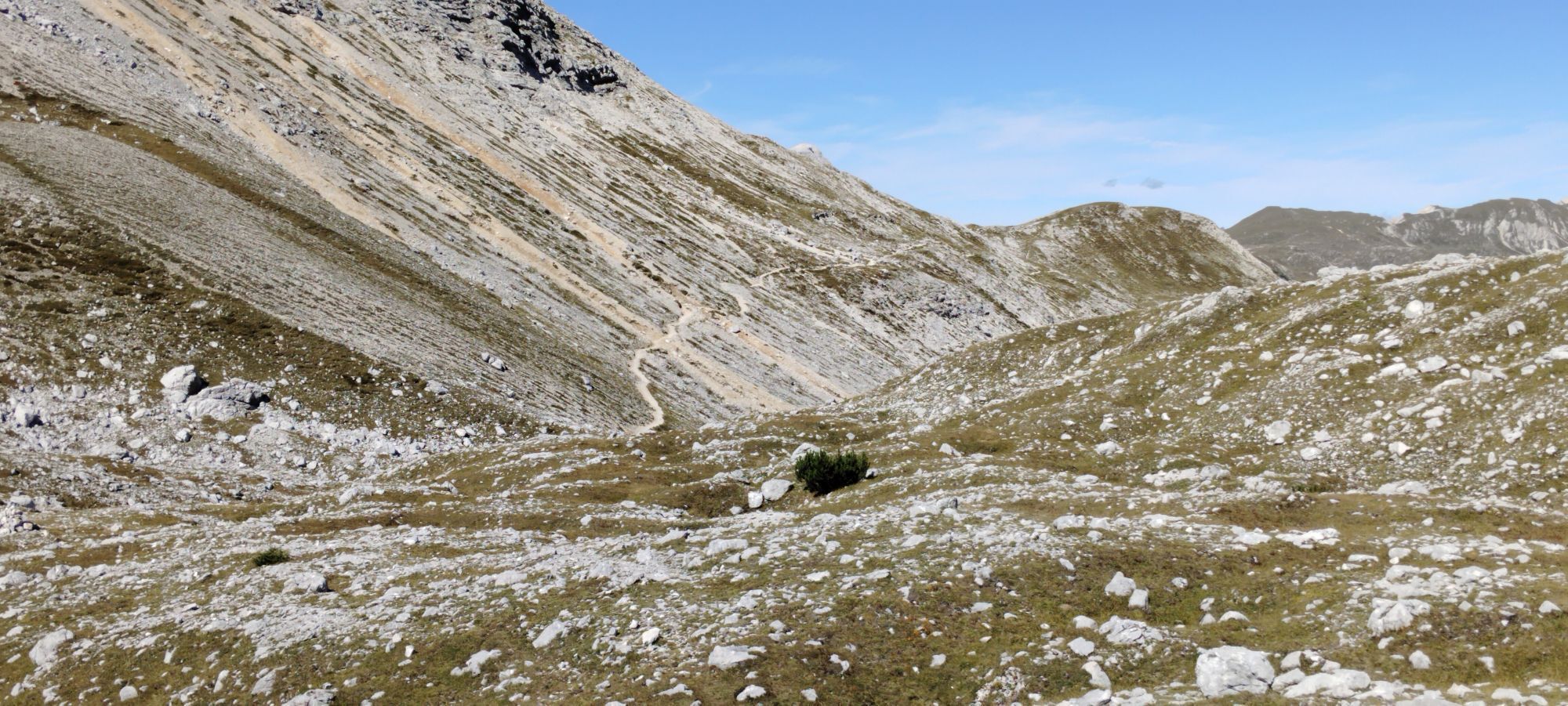 Über eine weite Hochebene Richtung Pragser Wildsee, Abstieg und Rast in Emmas Bistro.