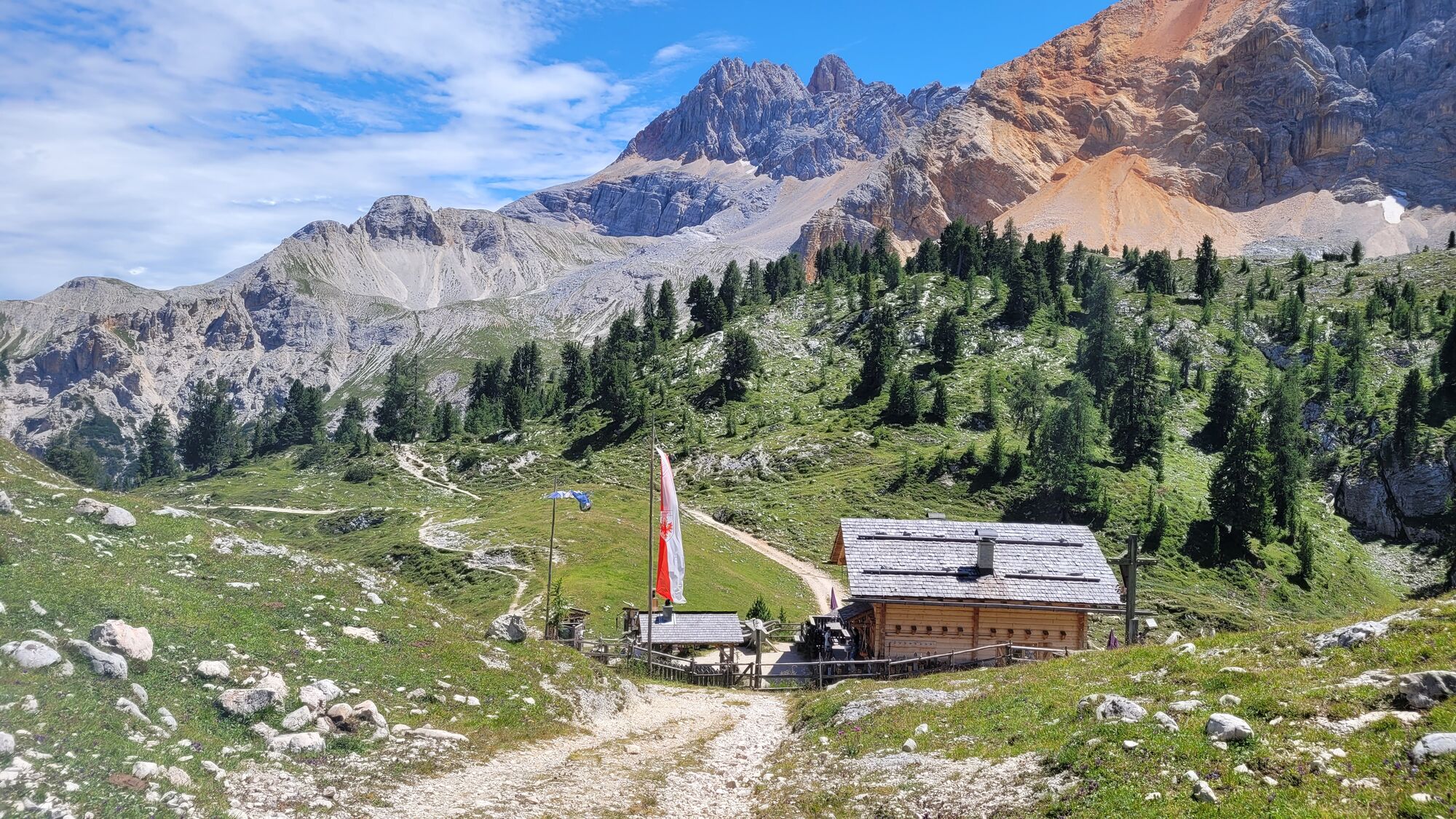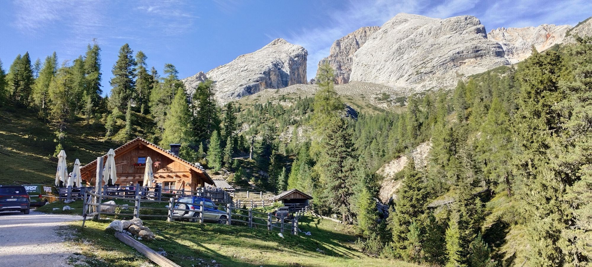 Start in Toblach mit dem Bus 442 auf die Plätzwiese. Hier ein Frühstück im Berggasthof oder bei der Stollaalm. Zur Rossalm über eine Hochebene mit Blick auf drei Zinnen, Grossvenediger und Grossglockner....