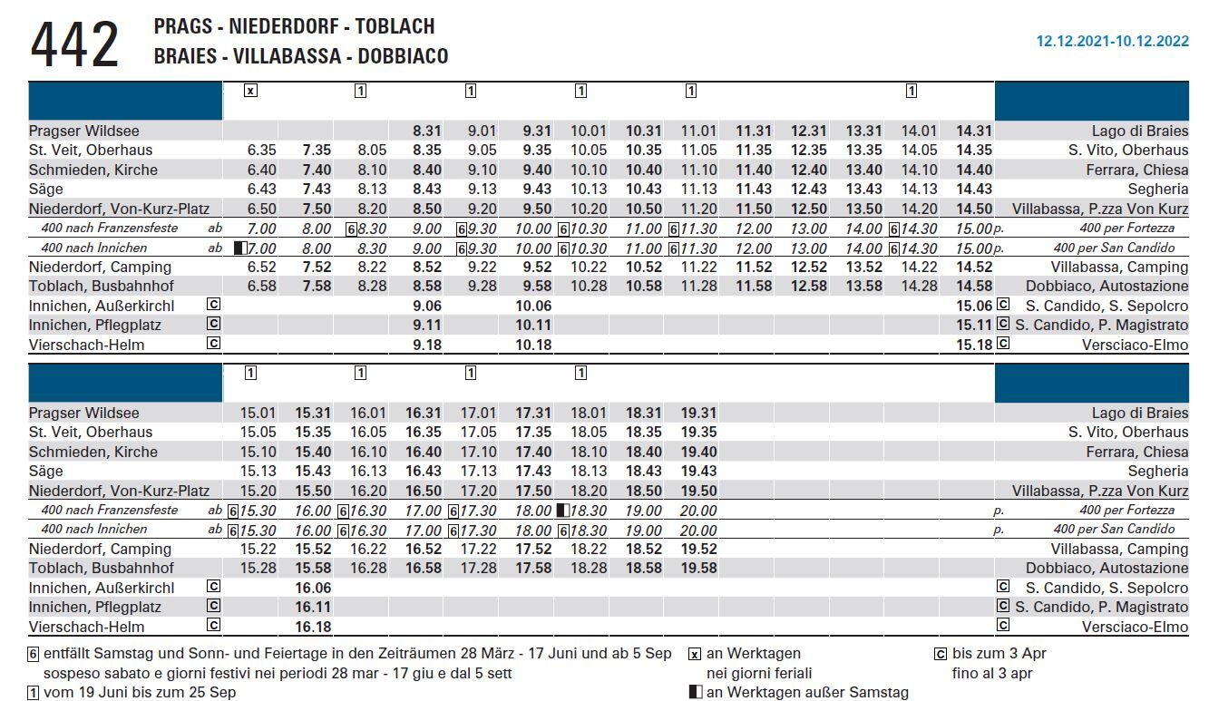 Dann Bus 443 zurück nach Toblach.