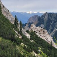Eine kurze Strecke am Fels mit Handseilsicherung, dann zur Rossalm als Mittagspause.