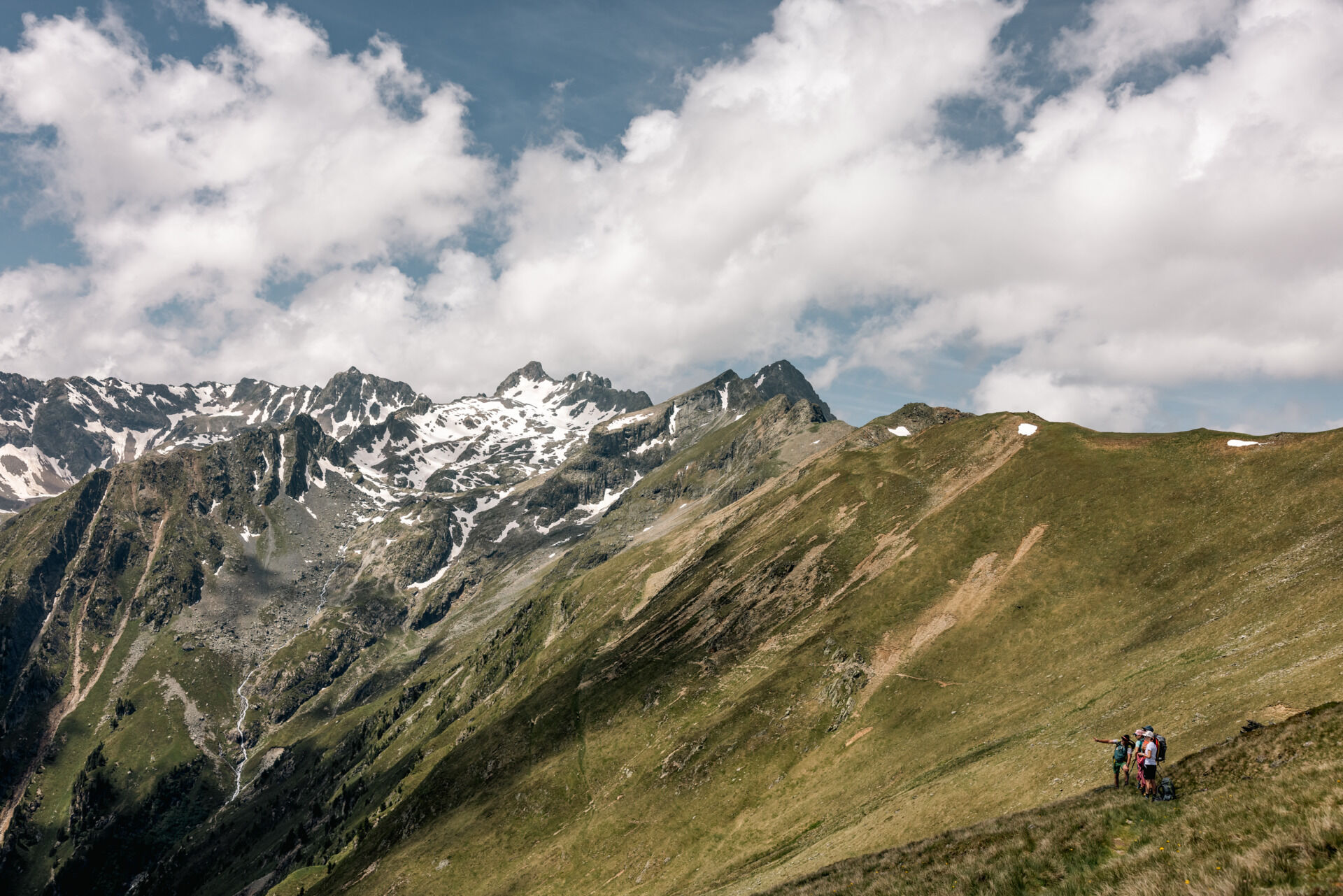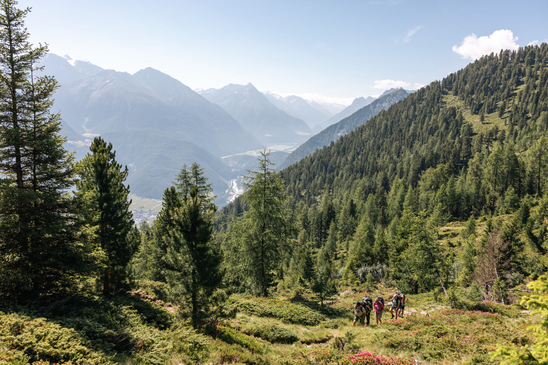 Appropriate equipment for alpine mountain hikes is a matter of course on all tours in the Alps. Sure-footed hiking boots or mountain shoes, breathable outdoor pants, a rain jacket, as well as a backpack with provisions, drinks, and a first aid kit always belong to the standard equipment for tours in the Alps. Sunglasses, sunscreen, headgear such as a bandana or hiking hat are also highly recommended, as well as a warm second jacket, trekking poles if desired, and possibly gloves. The choice of clothing should of course always be adapted to the current weather .
