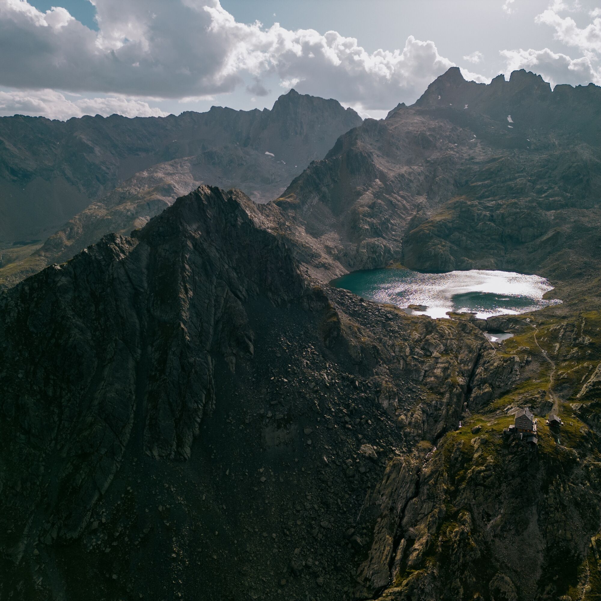 The start of the 1st stage is at the Gehsteig Alm above Tumpen. You can get there with the local hut taxi and thus save many kilometers and elevation meters on forest roads. From Gehsteig Alm, continue left on a significantly narrower mountain path uphill. At the fork, turn left (follow the signpost towards Erlanger Hut) in an ascending traverse over a wide gully to a mountain basin. From there, a beautiful, evenly leveled high path leads towards the hut. In the last section, it goes uphill again, and just before the hut, there is a rock protrusion to master. However, this is secured with iron chains. Upon arrival at the hut, you can enjoy the unique atmosphere and unwind in the evening. A visit to the Wettersee just above the hut is of course not to be missed.